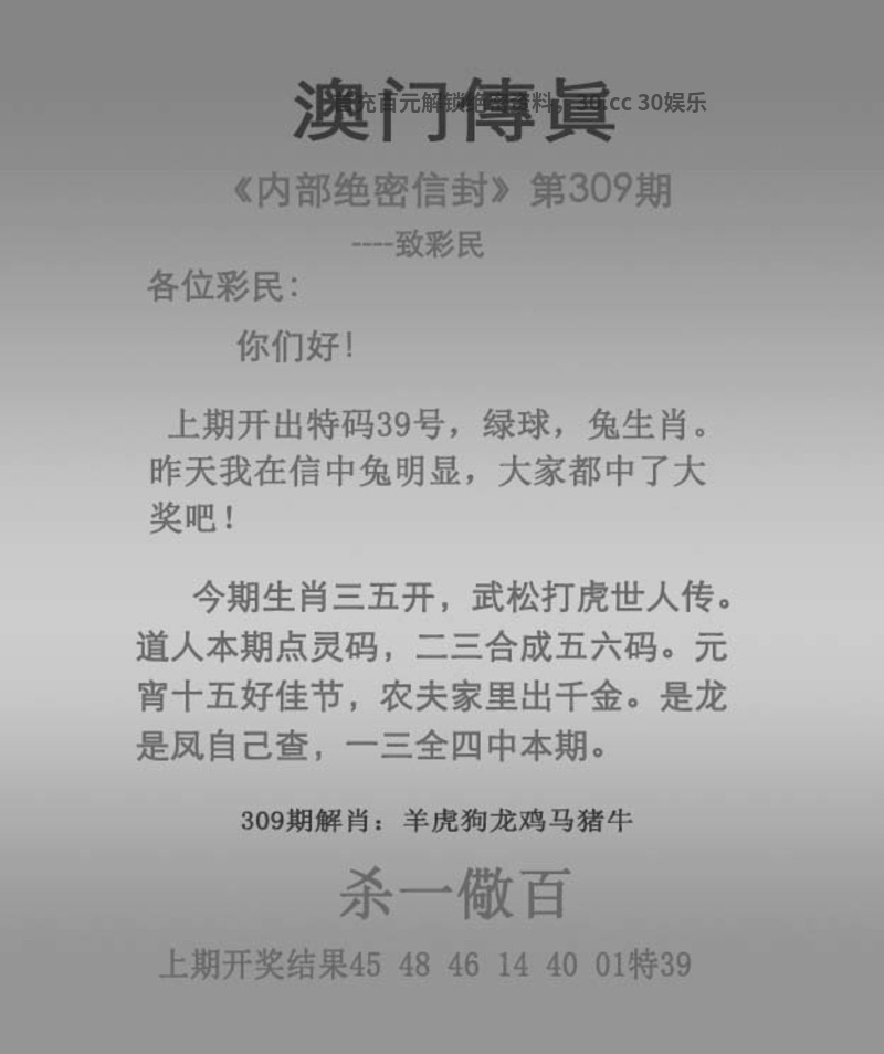 | 310期精解传真: 资料正在更新中 解:资料正在更新中 综合:资料正在更新中 主特:资料正在更新中 |